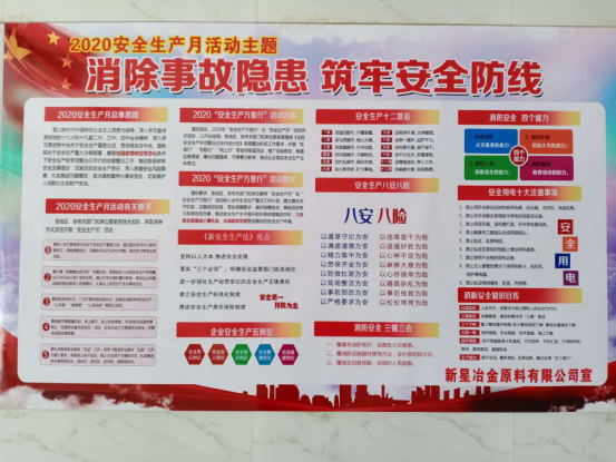 為響應國家安全生產月活動,根據(jù)鋼興集團公司《關于開展2020年“安全生產月“活動的通知》要求,新星公司緊緊圍繞“消除事故隱患、筑牢安全防線”的活動主題。結合新星公司安全工作實際情況,以加強安全意識,提高安全素質為著力點,深入開展安全月各項措施,安環(huán)部利用宣傳橫幅、張貼安全標語、標志標牌、LED電子顯示屏滾動播放相關安全知識和標語口號、網絡學習“血的教訓”事故案例等多種形式廣泛宣傳。